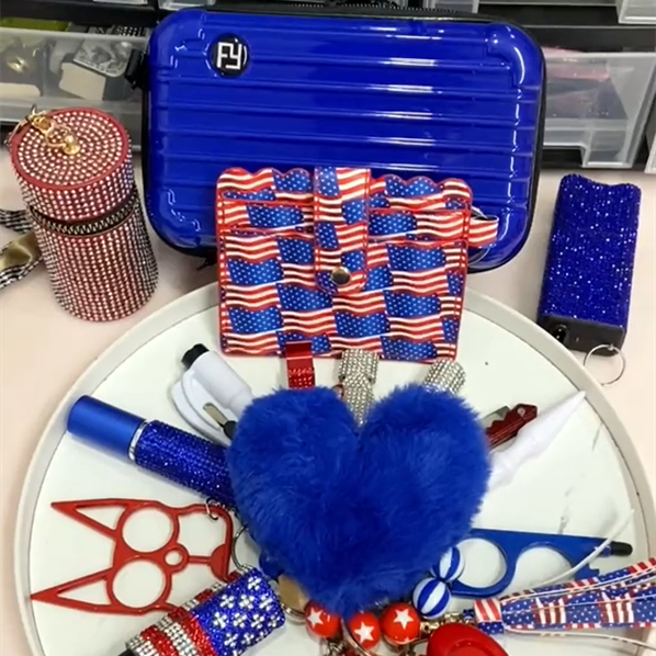 19 Pieces Of Sequin Dinner Bag Self-defense Keychain Set-Rose Red
